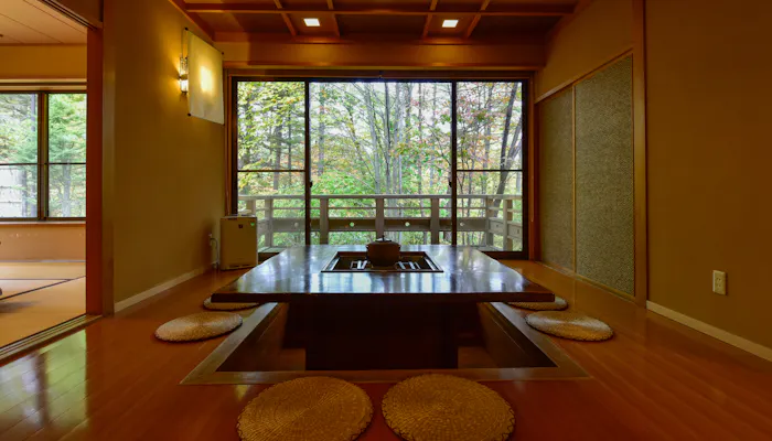 効能豊かな泉質を求め、湯治客が絶えない群馬県・草津温泉に佇む「つつじ亭」。5,000坪の敷地の中にわずか10室のみを備える、野趣溢れる温泉とお料理が自慢の料亭旅館です。館内では、お部屋、ラウンジ、檜の展望露天風呂などで、季節ごとに移ろう豊かな自然を感じられます。