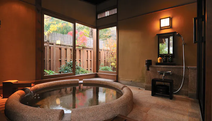 客室の露天風呂・檜内湯は温泉ではないので、宿の自慢の1つである温泉は大浴場でどうぞ。伊香保温泉でもわずか8軒でしか浸かることができないという貴重な黄金の湯を、源泉掛け流しで楽しめます。スパ「a.roga -aroma treatment space-」も併設されているので、さらに癒されたい方は熟練のセラピストによるアロマトリートメントを試してみては。