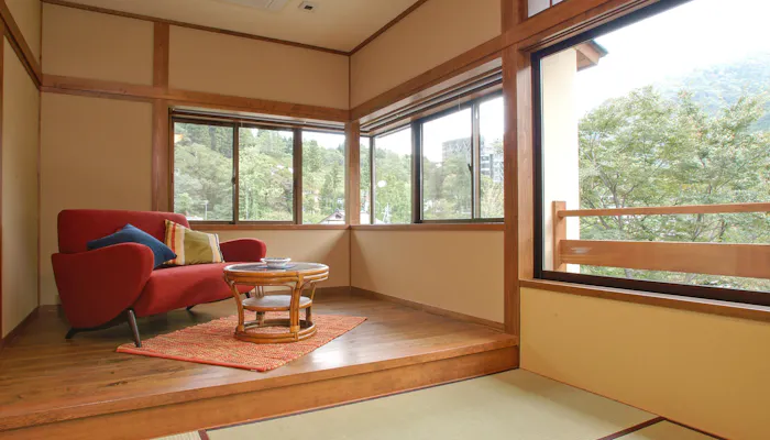 こぢんまりとした宿ですが、よりプライベートな滞在を楽しみたい方は源泉掛け流しの半露天風呂付客室「離れ家」がおすすめ。お食事も部屋食なので、大切な人とのゆったりとした時間を満喫ください。