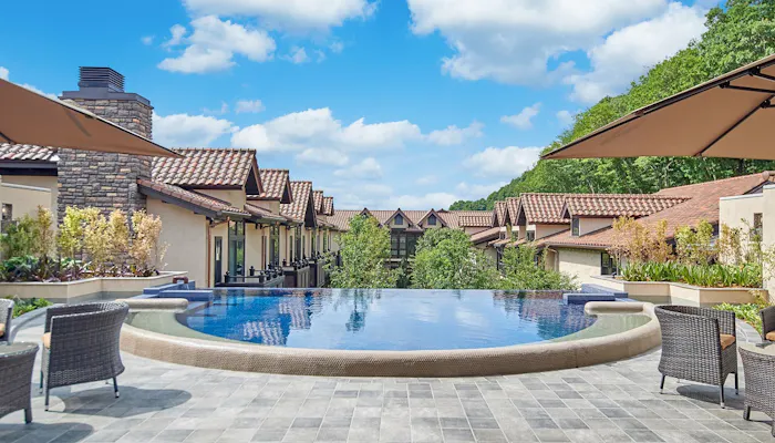 自然豊かな南軽井沢に位置する「ルグラン軽井沢ホテル&リゾート(グランベルホテルズ&リゾーツ)」。四季折々の草花に彩られた7万坪もの広大な敷地には、5つのエリアに日帰り温泉やカフェ、プールに絶景テラスなどが点在。どこを取っても見所満載で、充実のリゾートステイが楽しめます。