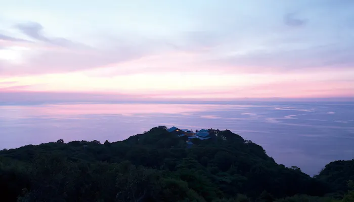 三重県・伊勢志摩国立公園の中に佇む「嵐を観る宿 御宿 The Earth」は、原生林に囲まれた岬に位置する大人のための宿。パノラマで広がる水平線のスケールの大きさに圧倒されるとともに、天候で変化する自然の表情から地球の息吹を感じられそうです。