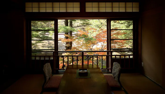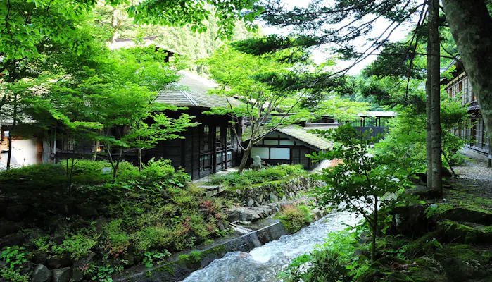 群馬県、長野県、新潟県にまたがる上信越高原国立公園の中に佇む「法師温泉長寿館」は、創業140年を誇る秘湯の一軒宿。三国峠の麓に位置し、宿のすぐ側を流れる法師川のせせらぎの音と標高1,636メートルの三国山の四季折々の表情からは、風情が感じられます。
