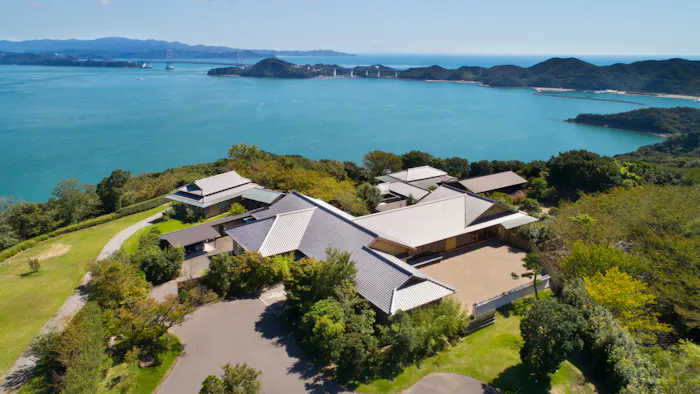 熊本県、長崎県、鹿児島県にまたがる雲仙天草国立公園の中に佇む「石山離宮 五足のくつ」は、オーシャンビューでありながら木々に囲まれた全室離れの温泉旅館。森の中で憩い、朝は海を眺めて自由さを感じられる非日常空間としてデザインされています。