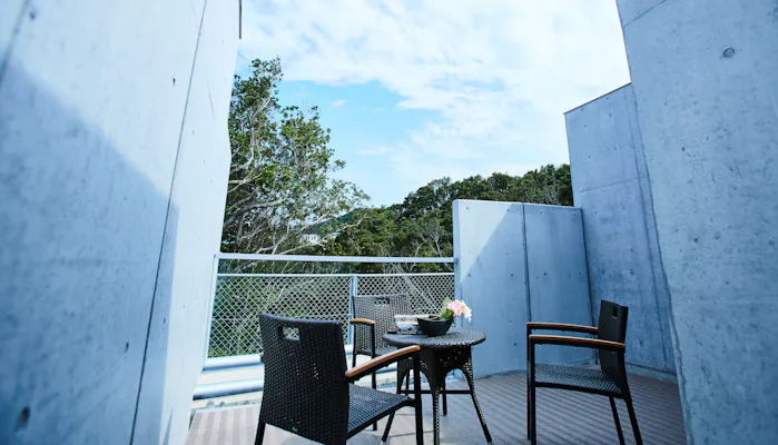 全てのヴィラに、浴室と一体になるようなプライベートテラスを完備。異国情緒溢れる佇まいながら、お風呂では白浜温泉を楽しめるのが嬉しいところ。窓を開けて半露天風呂気分で湯浴みをしたり、テラスから星空を眺めたり、思い思いに楽しんで。