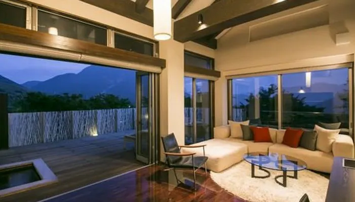奥湯布院の自然に囲まれた「奥宿 無相荘」。客室は離れ、別邸、スイートに大きく分かれ、全12室が趣の異なる贅沢な造り。それぞれ露天風呂または半露天風呂が付き、お部屋からは高原リゾートならではの景色を見渡すことができます。
