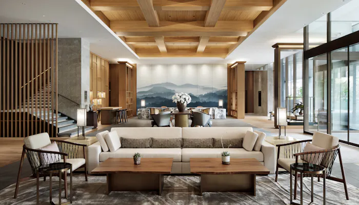 ホテルのデザインは、数々の名だたるラグジュアリーホテルでの経験を持つロンドンの「G.A Design」によるもの。ホテルの随所に奈良の美しい丘陵地帯からインスピレーションを得た自然と芸術のエッセンスを取り入れ、コンテンポラリーな心地よさとラグジュアリーさを感じられます。