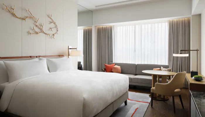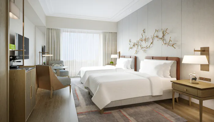 モダンな雰囲気と便利さを兼ね備えた、158室の贅沢なゲストルームは3階から。そのうち、スイートは16室、エグゼクティブルームは12室。