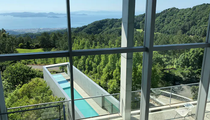 「瀬戸内リトリート 青凪 by 温故知新」は、海と一体になるようなインフィニティプールや、温泉ジャグジーとサウナも備えた温水プールなど、全7室には贅沢すぎるほどの施設を備えたスモールラグジュアリーホテル。この宿で指名したいのが、本館最上階にある1室限定の「THE AONAGI スイート」です。