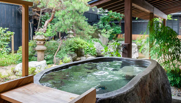「山形座 瀧波」は、空間や食、体験を通じて山形の風土や文化を感じられるモダンな温泉宿。全室に温泉露天風呂を備え、設えにもこだわりが詰まった19室の客室の中でも指名したいのが、宿で最も広い特別室「KURA01」。