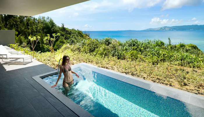 沖縄では珍しい天然温泉とプライベートプール付きの非日常空間