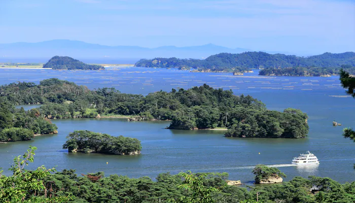 日本三景のひとつ「松島」は、松島湾内外に浮かぶ260余りある島々の総称。昔から多くの人を魅了し続け、俳人・松尾芭蕉もあまりの絶景に絶句したと言われています。松島のシンボル「五大堂」をはじめ、仙台藩初代藩主・伊達政宗ゆかりの歴史的建造物も多く点在。じっくり観光したい方には、さまざまなコースがある観光船の利用がおすすめです。