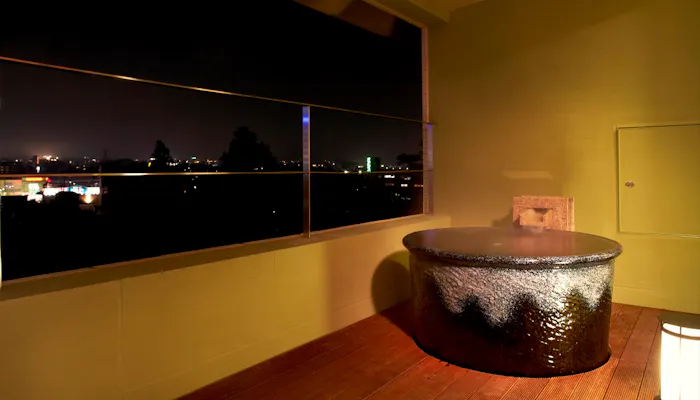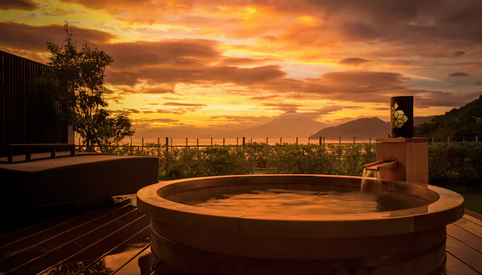 テラスを含めると占有面積130平米にもなる客室は、それぞれに趣が異なるラグジュアリーな空間。室内のインテリアはもちろん、テラスに備わる温泉露天風呂も天然御影石や檜の樽風呂など、お部屋の雰囲気に合わせた造りになっています。足を伸ばせるほど大きな露天風呂に浸かり駿河湾と富士山の絶景にパワーをもらう、贅沢な休日を過ごしましょう。
