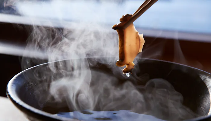 食事もプライベートに配慮し、宿泊するお部屋が貴賓室の場合は客室に隣接する専用の食事処、本館ならば完全個室の食事処で。地物を中心に厳選した食材を使用した“さんが懐石料理”には、こだわりの出汁で素材の持ち味を最大限に引き出した品々が並びます。