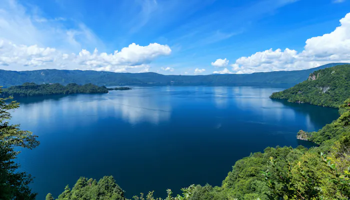 青森県と秋田県にまたがる湖「十和田湖」は、十和田八幡平国立公園を代表する景勝地のひとつ。約20万年前の火山活動によって形成されたカルデラ湖です。水深は日本では3番目に深い327メートル。大地をえぐった噴火のエネルギーのすさまじさと、形成にかかった年月の長さを感じることができます。