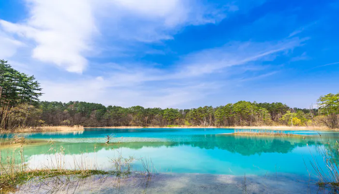 福島県磐梯山の北側、裏磐梯にある「五色沼湖沼群」は、毘沙門沼、赤沼、みどろ沼、弁天沼、瑠璃沼、青沼など大小30余りの湖沼群の総称。緑・赤・青など、水面が季節や天候などによってさまざまな色に変化することから“神秘の湖沼”とも言われています。五色沼を片道1時間程度で気軽に散策できるコース「五色沼自然探勝路」をぜひ歩いてみて。