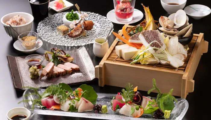 夕食は、囲炉裏での炭火焼き料理を含む伊豆の旬魚介を存分に堪能できる創作料理「枇杷流・伊豆懐石」。オールインクルーシブプランでは、慌ただしい出発の朝をゆっくり過ごせる12時レイトチェックアウトのサービスが受けられるのも嬉しいポイントです。