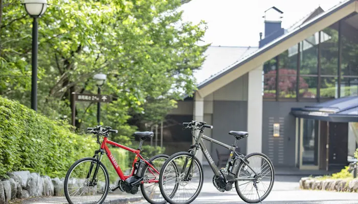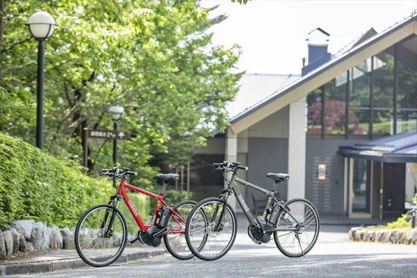 晴れた日の夕方や朝にサイクリングはいかが。宿には、施設周辺を散策できる電動自転車が用意されています。もちろんこちらのレンタル料もオールインクルーシブ。宿内はもちろん外でも、那須の魅力をオールインクルーシブで満喫しましょう。