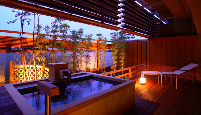関西の奥座敷として親しまれている芦原温泉にあり、豊富な客室バリエーションが魅力の「あわら温泉 グランディア芳泉」。全115室の客室の中でも16室しかない「別邸 個止吹気亭」は、「別邸 個止吹気亭」の宿泊者だけに入館が許された特別な館。全室露天風呂付き&お部屋食で、ワンランク上のプライベートな滞在を叶えてくれます。