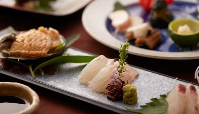 お食事は、季節の素材をふんだんに使用した本格的な懐石料理。地元佐賀ならではの食材や海の幸など、自然の恵みを五感で享受することができるでしょう。夕朝食ともにお部屋でゆっくりといただけます。