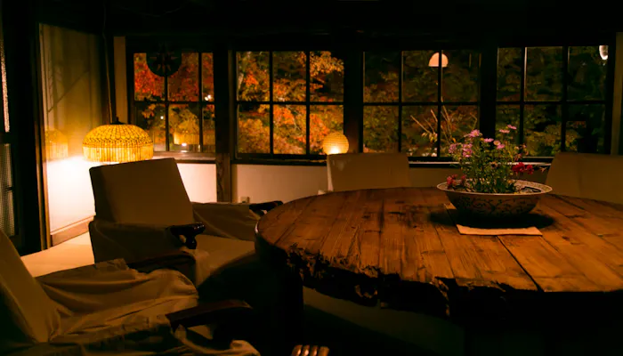 黒川温泉の静かな森に佇む「月洸樹 黒川」。4,000坪の広大な敷地に配された8室のみの離れは、最もコンパクトなお部屋でも80平米以上と贅沢に寛げます。お部屋毎に造りの異なる露天風呂では、天を仰げば星空や月光を眺められ、時間を忘れて湯浴みを愉しむことができます。