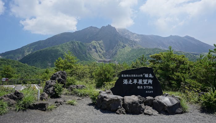 鹿児島県のシンボルのひとつ「桜島」は1周約35kmで、車での所要時間は1時間ほど。北岳の4合目にある「湯之平展望所」からは、桜島や鹿児島市街を一望することができます。
