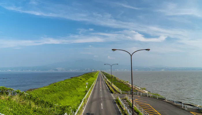 長崎県でおすすめのドライブスポット:諫早湾干拓堤防道路(雲仙多良シーライン)