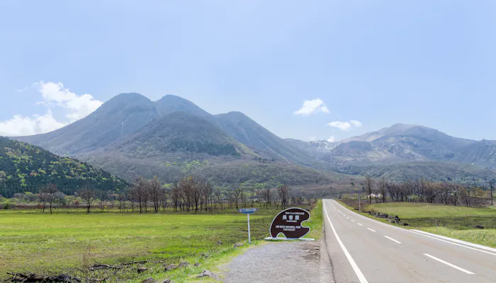 北は大分県・湯布院の程近くから、南は熊本県・阿蘇までの約60kmをつなぐ道路・通称「やまなみハイウェイ」。九重連山を眺めながらのドライブは、九州を訪れたら一度は体験してみたいものです。