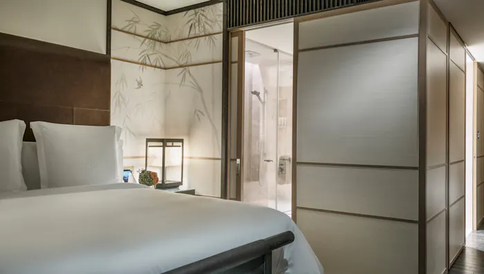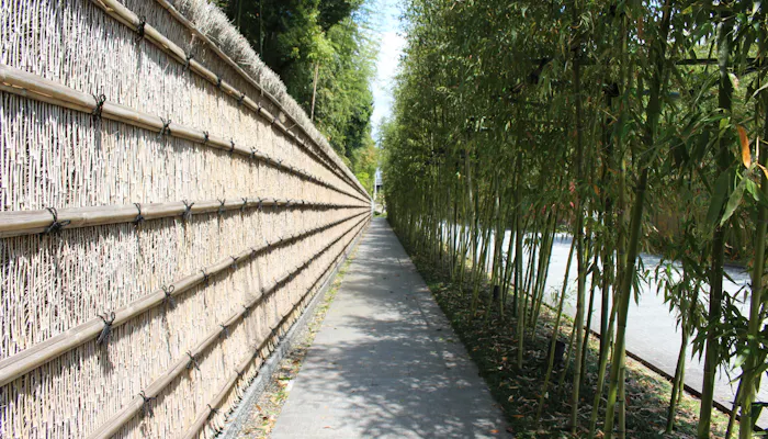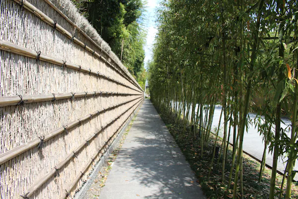 ホテルの入り口は、100メートルに渡って続く竹林の道の先。風情ある小道を進んでいくほどに非日常の世界へと足を踏み入れるようで、ワクワク感が高まります!