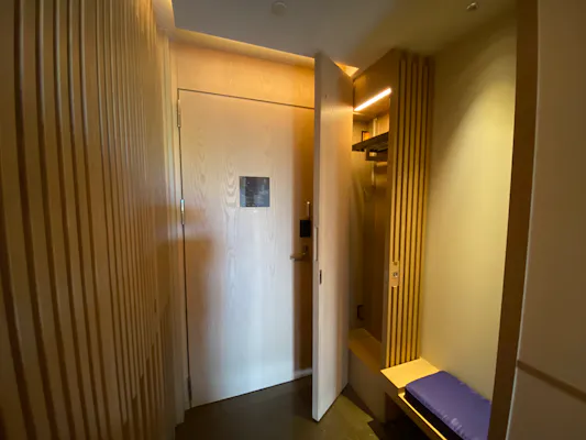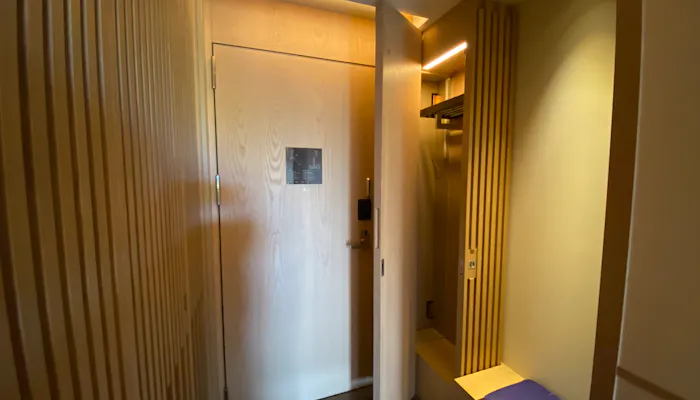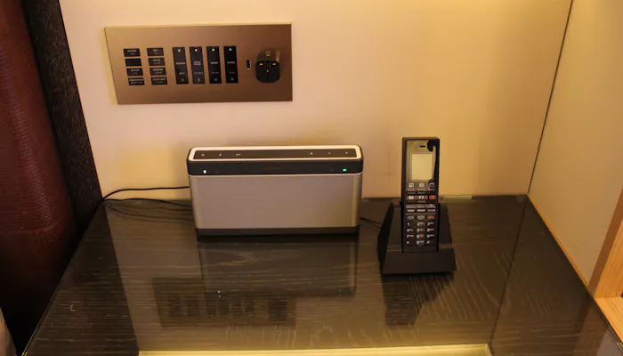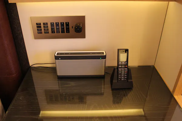 入口横には「バトラーボックス」なるものが設置されていました。このボックスにランドリーを依頼したい衣類や磨いてほしい靴などを入れてボタンを押すと、客室の外にある扉からスタッフがピックアップ。お手入れが完了すると、再びバトラーボックスに入れておいてくれます。時節柄、感染症対策が気になるところですが、こうした非対面で受けられるサービスはありがたい。