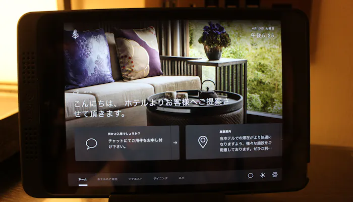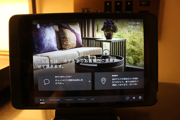 こちらは各部屋に用意されているiPad。ホテルの詳しい案内はもちろん、中に入っているチャットアプリを使えば、スタッフと直接やりとりすることが可能です。