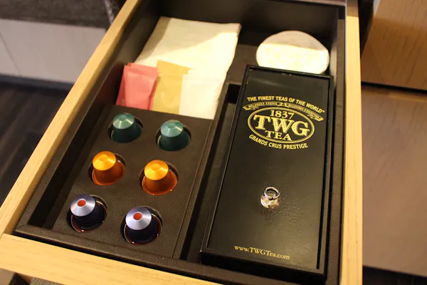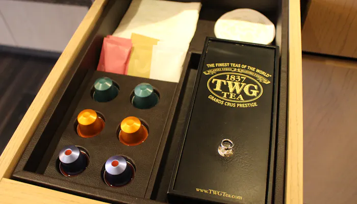 コーヒーはネスプレッソ、紅茶はシンガポールの高級紅茶TWG。