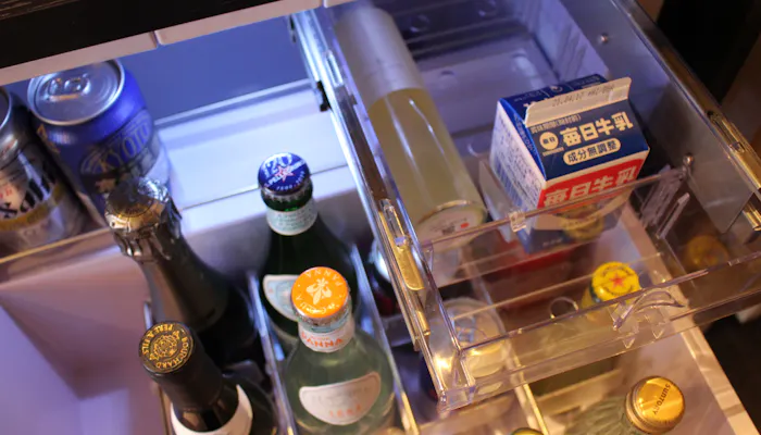さらに嬉しかったのが、「コーヒーや紅茶に使ってください」と、冷蔵庫内に小さいサイズの牛乳が常備されていたこと。もちろん無料です。こういう、ちょっとしたサービスが本当に嬉しい。
