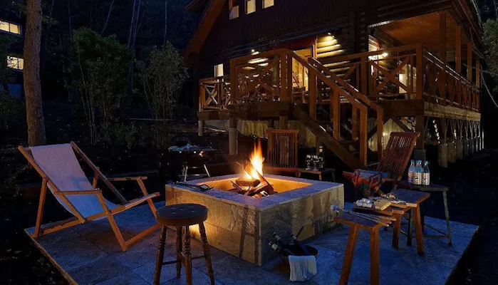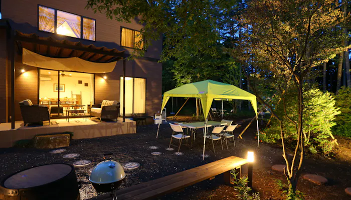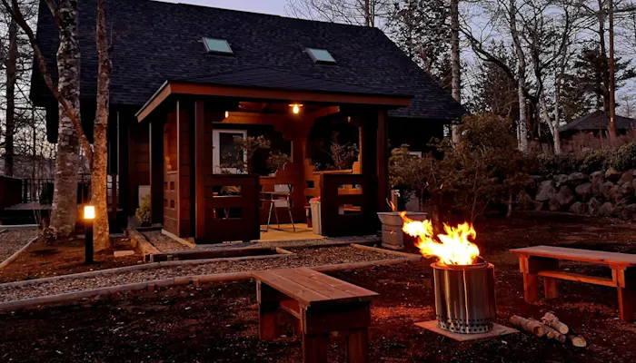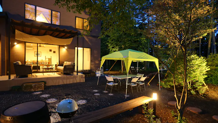 「グランドヴィラ」は、庭に専用の焚火場も。非日常の中で、大切な家族やペットとのヒュッゲな休日を過ごしてみては。