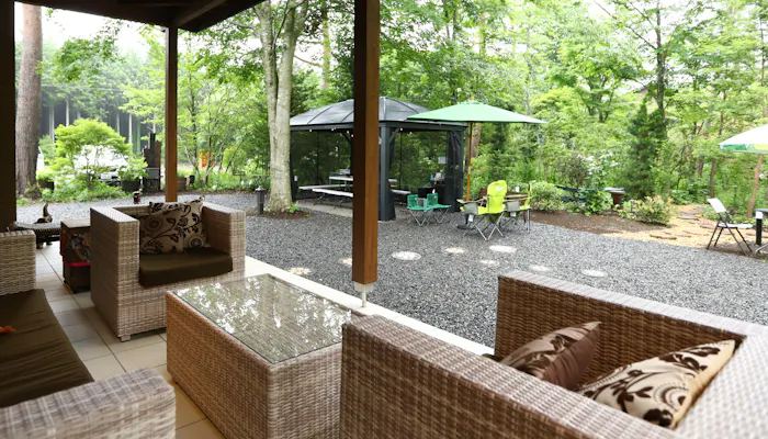 3月から10月には、20平米ある屋根付きウッドデッキでのバーベキューも可能。(有料オプション)八ヶ岳の自然と木の温もりに癒されて、大切な人たちと気ままに別荘気分を満喫しましょう。
