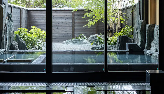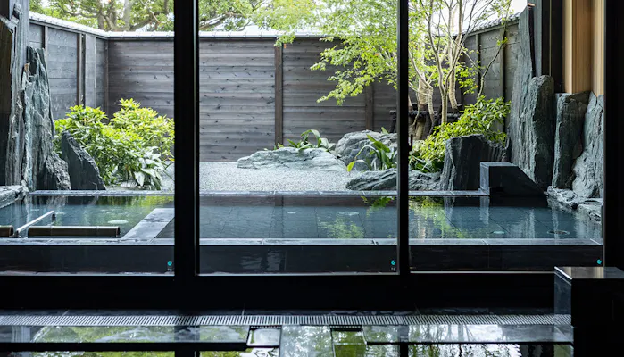 男女別の大浴場のほか、貸切で利用(有料)できる半露天風呂もあるので、夫婦やカップルにおすすめ。