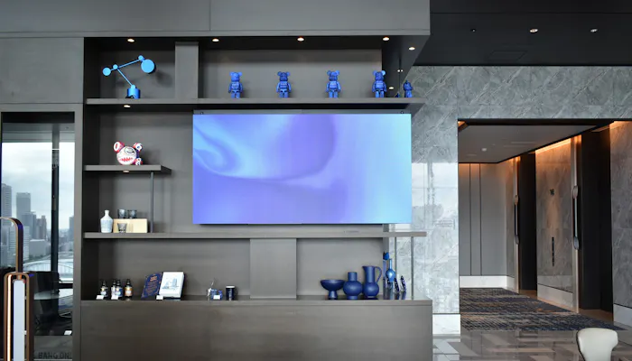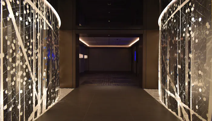 1階のエントランスでは、東京の夜景をイメージしたアート作品がお出迎え。五感を魅了する仕掛けのひとつであるオリジナルフレグランスが香り、心地良く気持ちを切り替えてくれます。