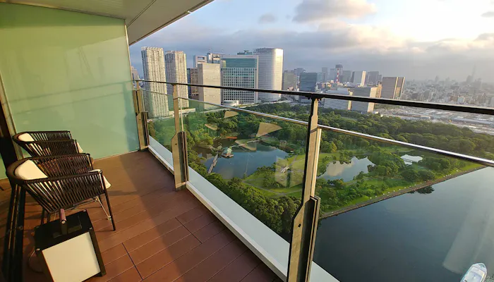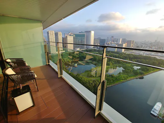 バルコニーに出れば、浜離宮恩賜庭園の爽やかな緑と東京湾に注ぐ隅田川、東京スカイツリー(R)や都心のビル群など、竹芝ならではの景観をより近くに感じることができます。