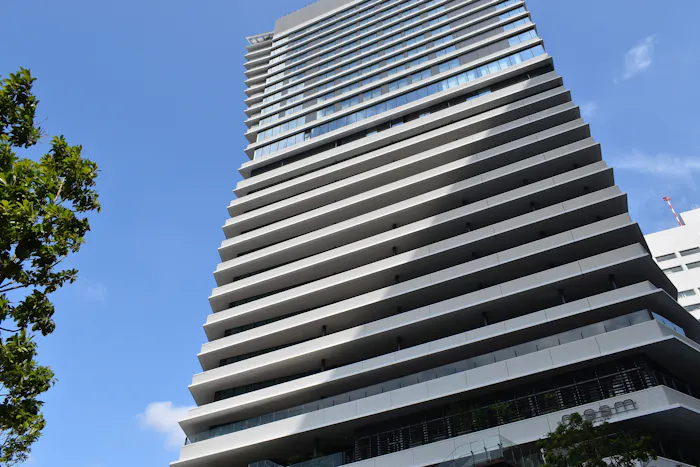 浜松町駅、竹芝駅、大門駅の3駅から徒歩圏内の複合施設「ウォーターズ竹芝」タワー棟の16~26階部分に位置する「メズム東京、オートグラフ コレクション」。