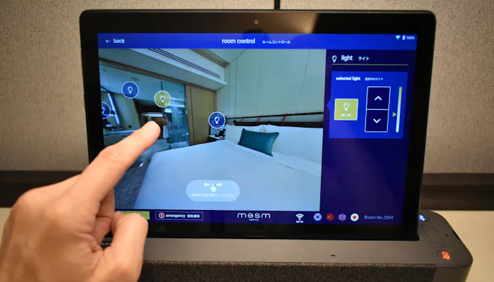 客室の照明や空調のコントロールなど、快適な滞在をサポートしてくれる様々な機能・案内が備わっています。照明はシーンに合わせた一括操作機能に加えて、室内をAR画面で確認しながらピンポイントで変更できるのが便利です。