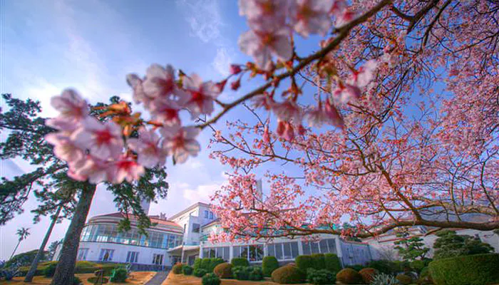 開業80周年を迎えた伊豆の「川奈ホテル」。敷地内にある桜は約30種、9000本。1月の寒桜を皮切りに、2月は河津桜や緋寒桜、3月は大島桜やおかめ桜、そして4月の染井吉野や八重桜まで、次々に訪れる人の目を楽しませてくれます。