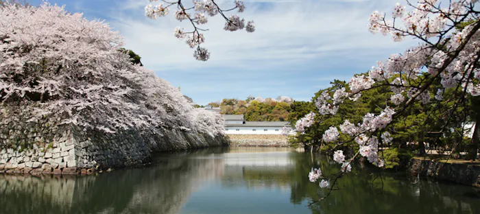 国宝に指定される名城・彦根城。その中堀という絶好のロケーションに恵まれた「彦根キャッスル リゾート&スパ」は、勇壮な天守を望める宿として国内外の旅人から人気を集めています。堀側のツインルームに滞在すれば大きな窓から城郭を見渡せ、夜ともなれば白く浮きたつような桜の花が城を彩る絶景を独り占めできます。リゾート内の施設「城見のテラス」やお酒が楽しめるラウンジからも桜と城を眺められますし、何と言っても贅沢なのは「城見の湯」から、湯船に浸かりながらのんびりと花見ができることでしょう。快適なホテルのサーヴィスを受けながら、絶景を眺められるなんて、殿や姫様さえ羨むかもしれませんね。