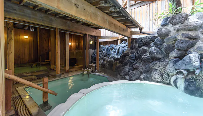 「奈良屋」では、湯畑の南西側で湧出している「白旗源泉」を引いています。「白旗源泉」は、源頼朝が発見し入浴したと伝えられる草津の中でも歴史ある温泉。その湯を大浴場の内湯、露天風呂、貸切風呂で思う存分堪能できます。
