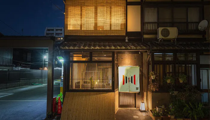 京都駅から地下鉄やバスで11分。五条駅のほど近くに二階建ての「万葉居」は、はんなりと佇んでいます。細かな格子や端正な犬矢来が出迎える入口は、誰もが連想する京町家のイメージそのもの。愛らしい暖簾をくぐると、シックでおしゃれな空間が広がり、嬉しいギャップに心躍ります。モダンなリビングやキッチンはすっきりとして、使い心地の良さも人気の秘訣です。
