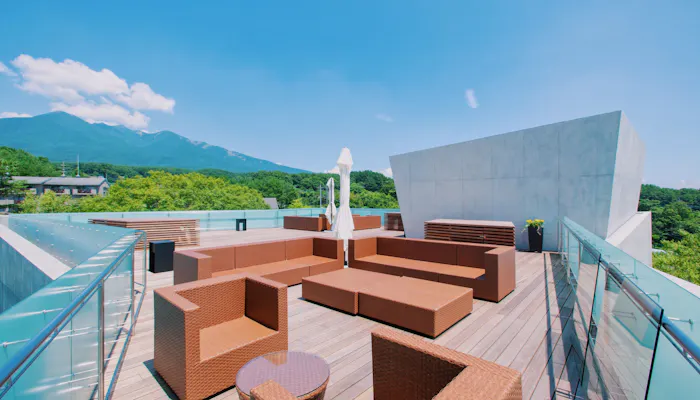 「HOTEL KEYFOREST HOKUTO」は、アートを中心に、リラクゼーションやスポーツ、グルメを楽しめる「小淵沢アートヴィレッジ」内にあるスモールブティックホテル。全室テラス付の客室は、緑に囲まれて寛げる癒しの空間。屋上の「スカイテラス」からは、八ヶ岳、南アルプス、富士山など、壮大な山々を見渡します。