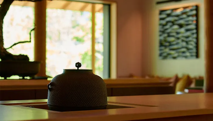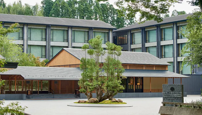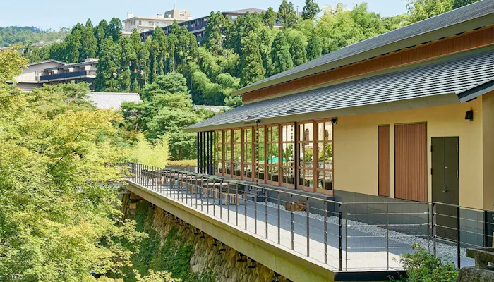 「ROKU KYOTO」は鷹峯三山の麓にあって、敷地内を天神川が流れるという自然豊かなロケーション。中心市街地の喧騒が嘘のような静かな時間が流れます。ちなみに天神川では平安時代に紙すきが行われていたそうで、「ROKU」の名は、“紙を漉く=漉(ろく)”に由来しています。