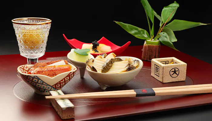 宮若という土地は、山々から湧き出る水と盆地ならではの寒暖差によって、質の良い作物が採れる場所。採れたての新鮮な野菜と鐘崎漁港で水揚げされた魚介類をメインに組み立てられた、懐石料理が楽しめます。