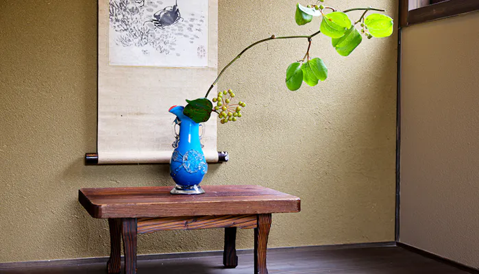 華美な装飾は全くありません。あるのは訪れる人を温かく迎える掛け軸や生花。洗い出し仕上げの三和土(たたき)。乳白色の電灯からもれる柔らかな明かり。そして静かな時間。