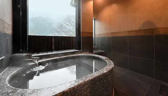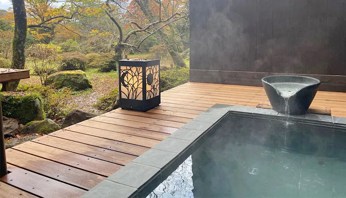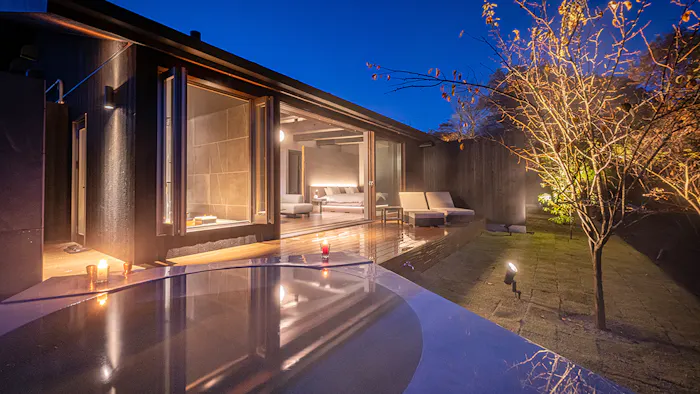 2.源泉掛け流しの露天・半露天風呂を備えた全6室のプライベートスイート