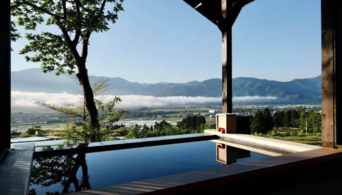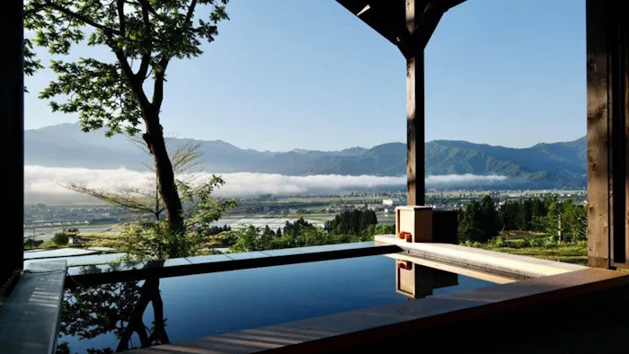2021年10月には、魚沼地域に残る古民家をフルリノベーションした一棟貸切の客室「THE HOUSE<IZUMI>露天風呂付 一棟貸しスイート」が誕生。「里山十帖」から車で約12分の一面に棚田が広がる集落にあり、静かな環境とプライベートな空間を満喫できます。古民家に彩りを添えるのは、フィン・ユールやハンス・J・ウェグナーなどの名作家具と、現代アート。「絶景露天風呂」として知られる「湯処『天の川』」にも劣らないという眺望自慢の客室露天風呂も大きな特徴です。