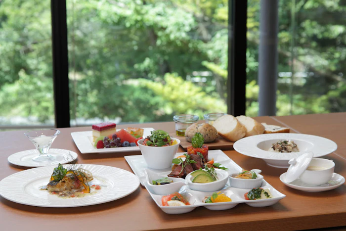 レストランには、シェフ特製の愛犬用メニューも用意されているので、地元食材を活かした“軽井沢フレンチ”を一緒に堪能できます。